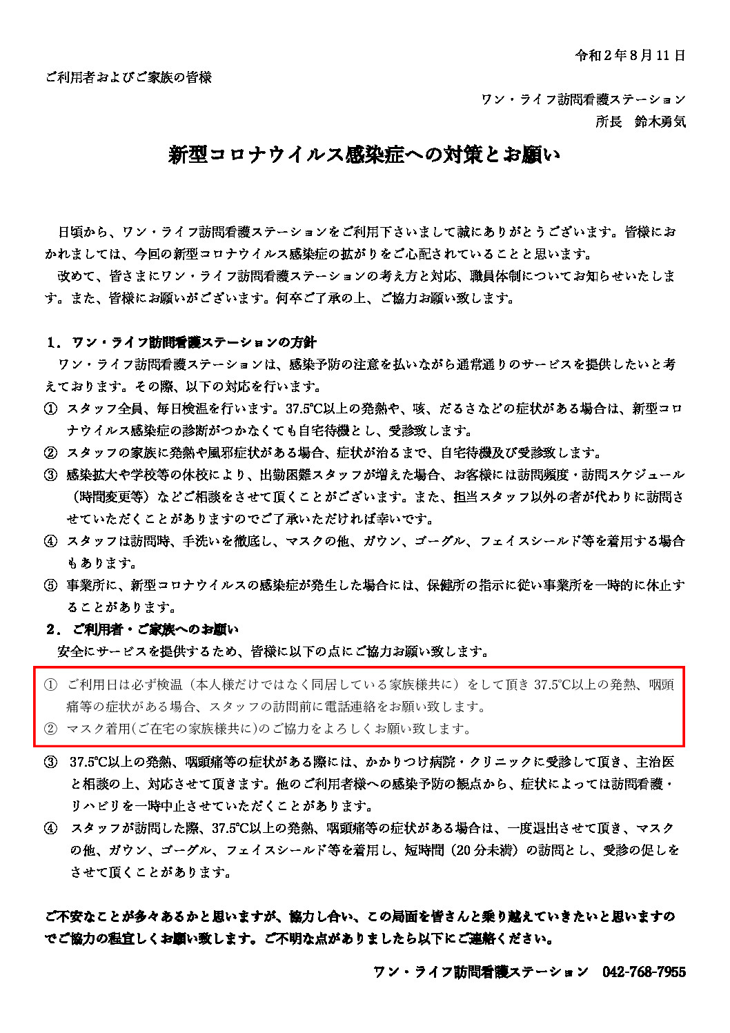 ワン・ライフ訪問看護ステーション 鈴木です。