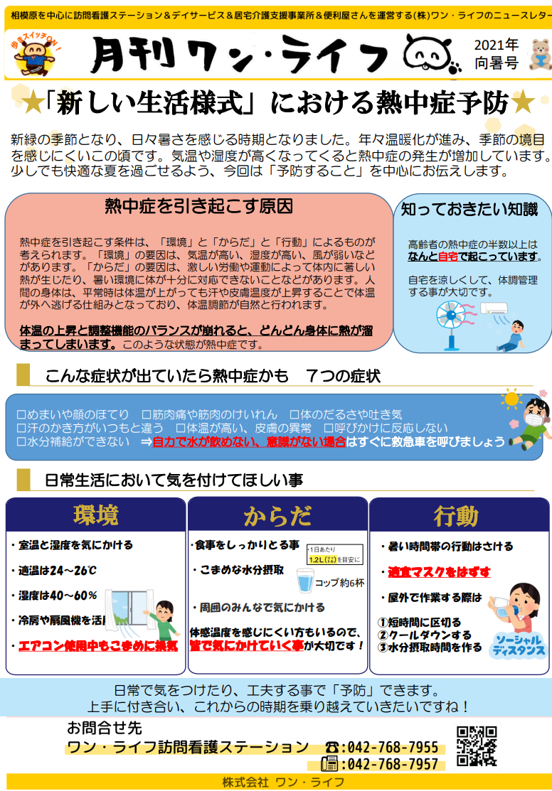 PDFファイルはこちら➡月刊ワン・ライフ 6月 熱中症