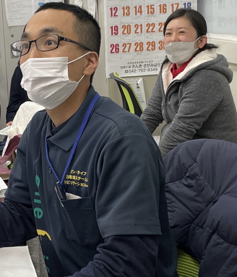 写真は先日相模原市からも勤続表彰された理学療法士の岡田です。岡田からの話を皆が聞き、そして笑う!とても良い雰囲気でした。